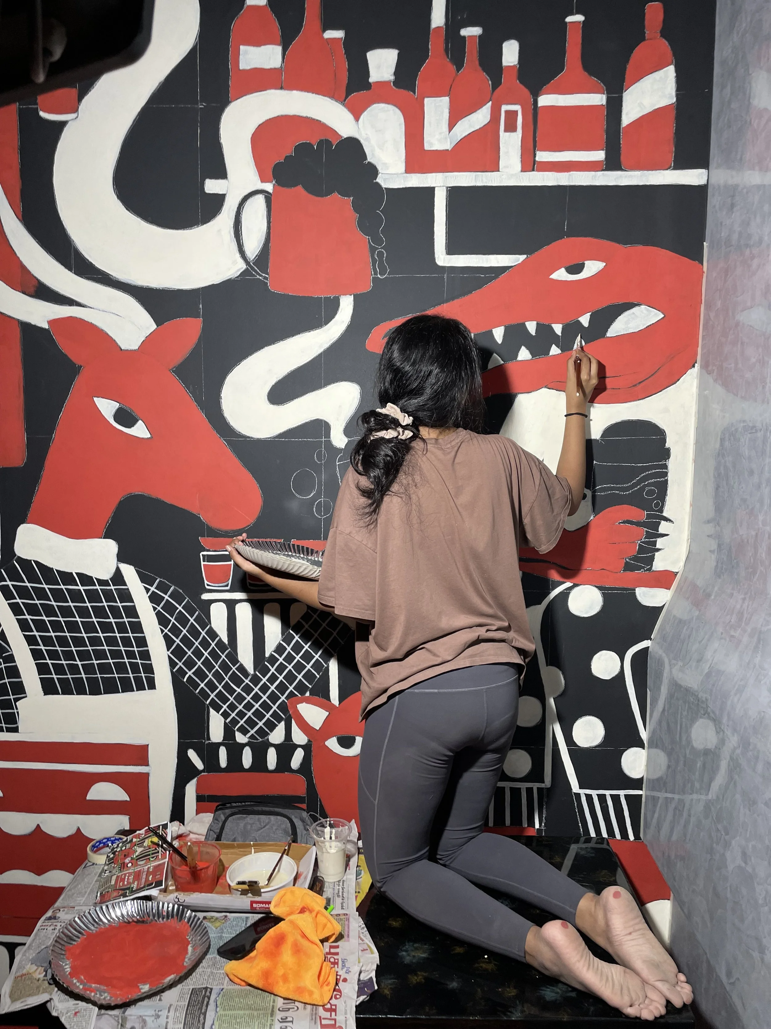Commissioned to conceptualise and create a mural at Metamorphosis Brewery, Pondicherry.
